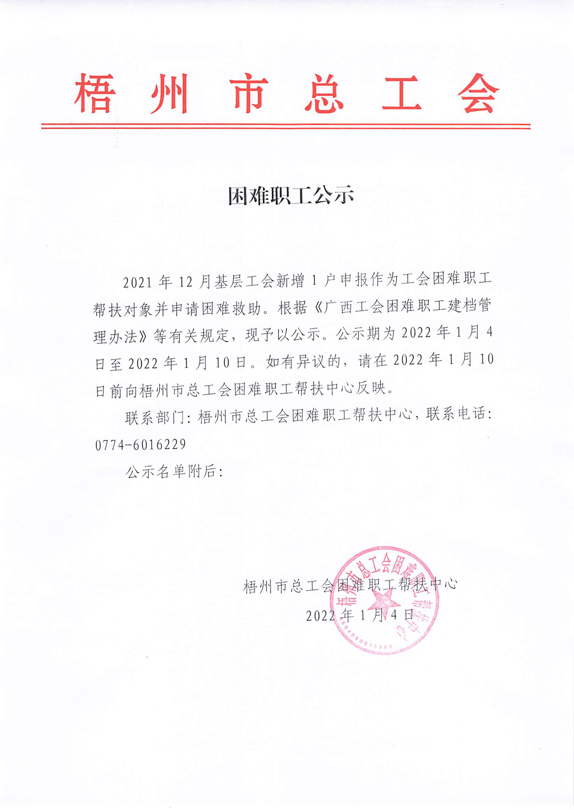 來(lái)源:梧州市總工會(huì)   作者:   瀏覽:次   發(fā)表時(shí)間:2022-01-04 17:34:16