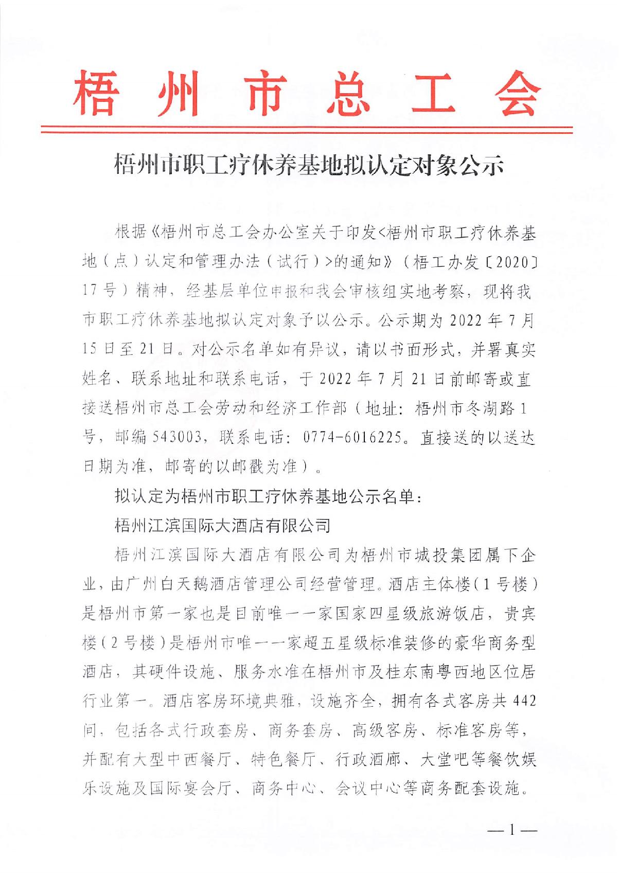 梧州市職工療休養(yǎng)基地擬認(rèn)定對象公示
