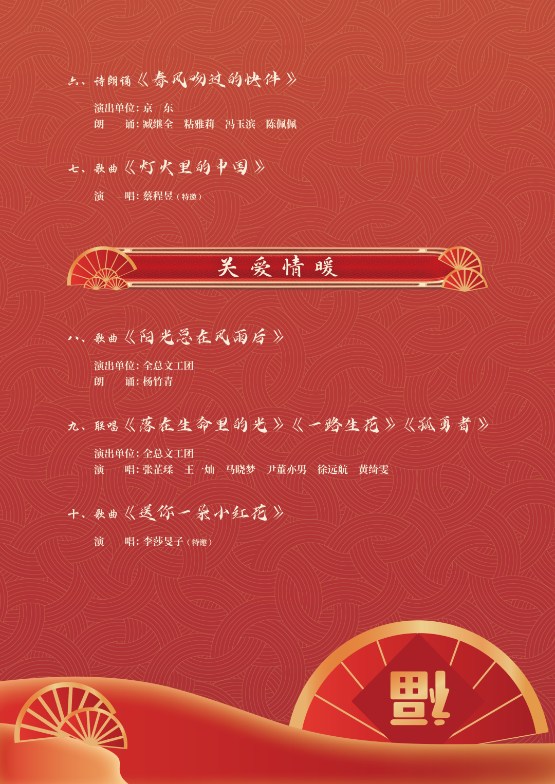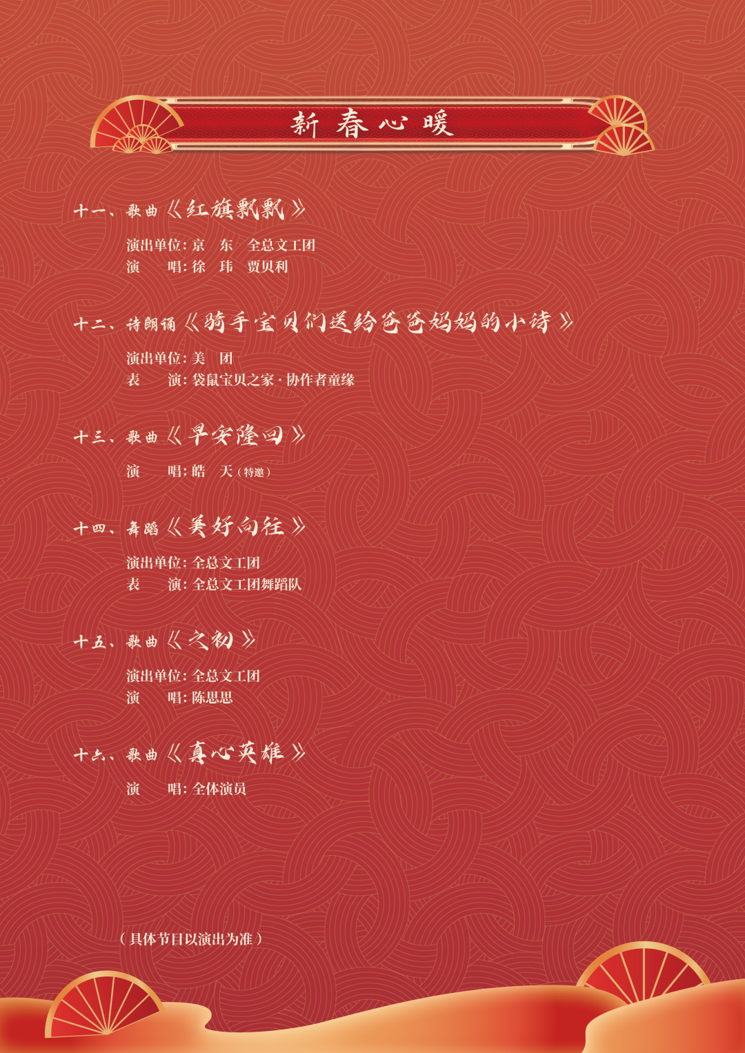 此次活動(dòng)以“溫暖有你 共赴美好”為主題,突出喜慶、溫暖、美好的主基調(diào),分為“春風(fēng)送暖、關(guān)愛情暖、新春心暖”三個(gè)篇章,通過(guò)文藝工作者與新就業(yè)形態(tài)勞動(dòng)者同臺(tái)演出的聯(lián)誼活動(dòng),讓廣大職工感受到“娘家人”的關(guān)心和節(jié)日的溫暖,是在農(nóng)歷春節(jié)即將到來(lái)之際,面向全體新就業(yè)形態(tài)勞動(dòng)者和全國(guó)廣大職工開展的一次文化送溫暖活動(dòng)。