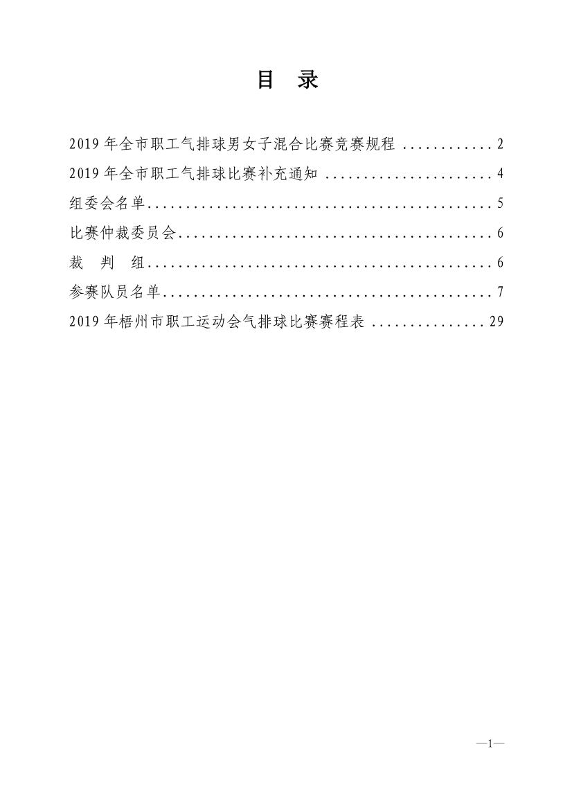 2019 年全市職工氣排球男女子混合比賽秩序冊(cè)