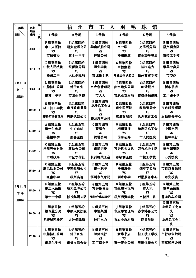 2019 年全市職工氣排球男女子混合比賽秩序冊(cè)