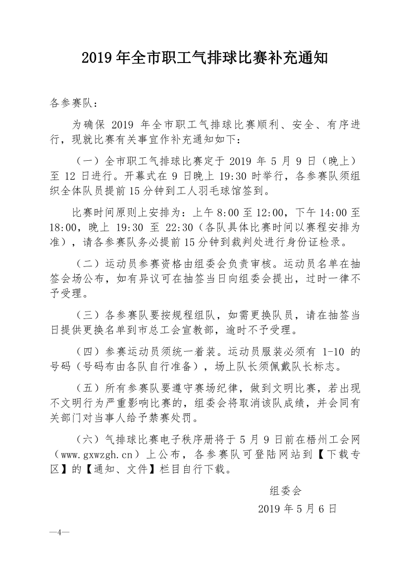 2019 年全市職工氣排球男女子混合比賽秩序冊(cè)